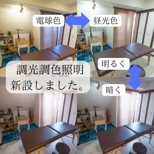 リラックスな雰囲気で施術できる3000K電球色から パーソナルカラー診断に最適な6500K昼光色まで 専用リモコンで無段階調整が可能です。