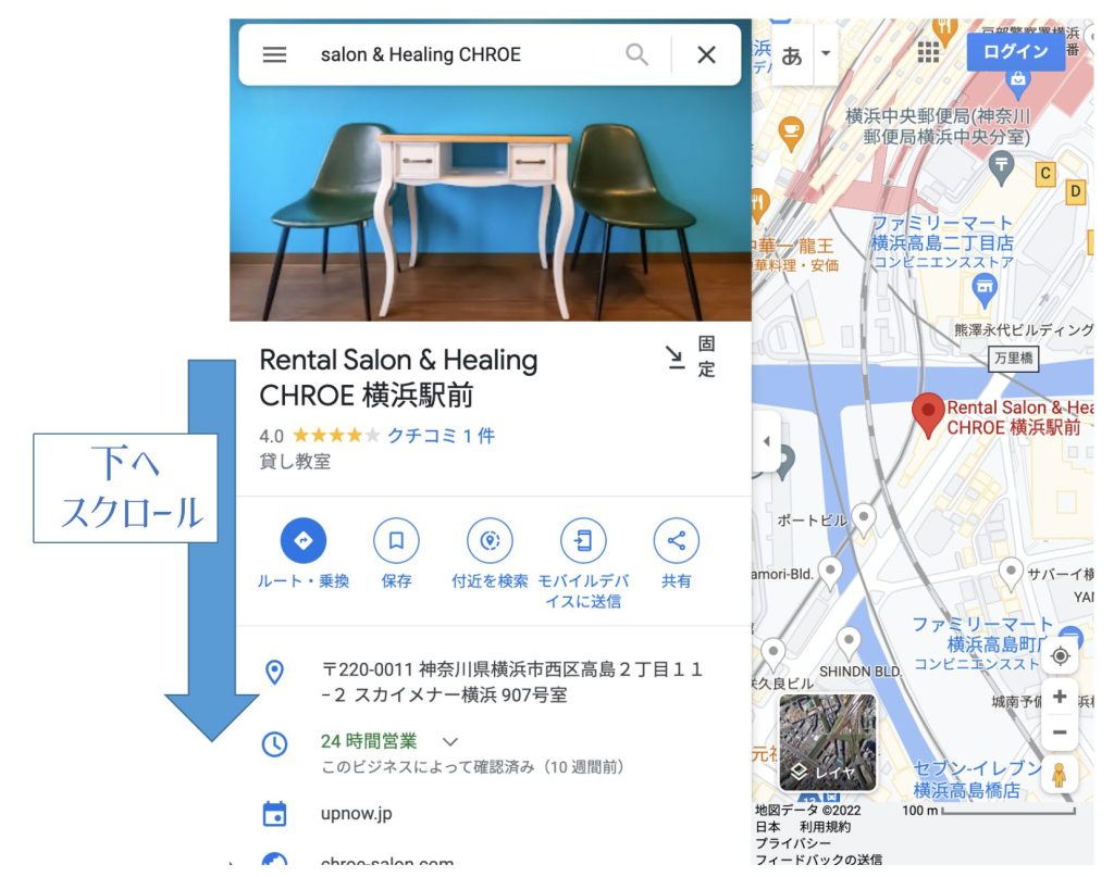 スマホアプリをお使いの場合は、「Salon & Healing CHROE」で検索いただけると、当サロンのポインタが表示されますのでお試しくださいませ。