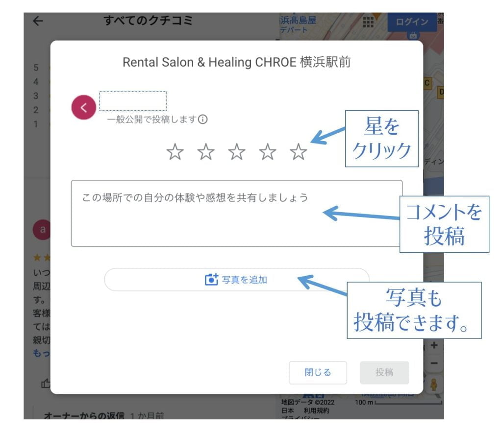 こちらのページでは、Googleマップへのレビューの方法をご説明いたします。