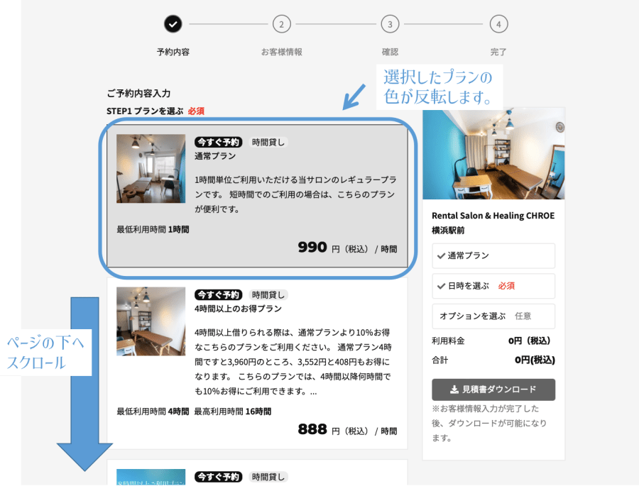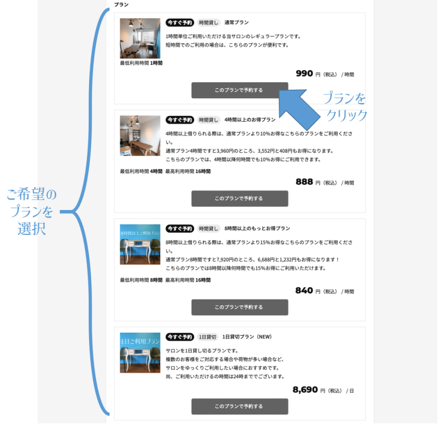 すると、ご予約プランを選ぶ項目が現れます。