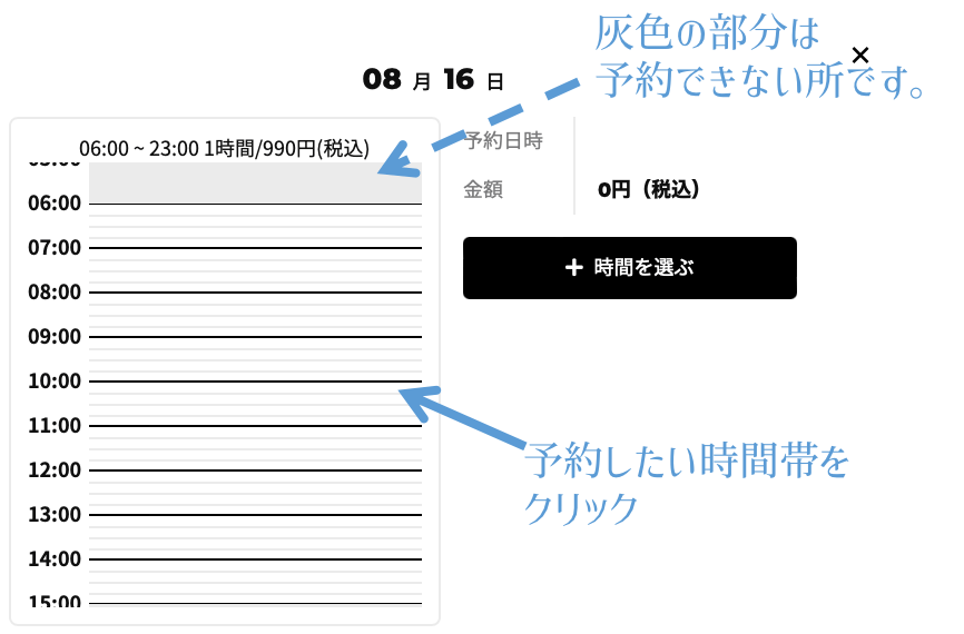 ※灰色に反転されている所は予約不可となっています。