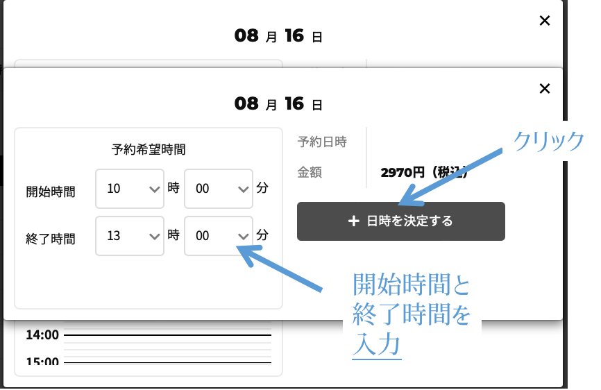 予約したい時間を設定します。