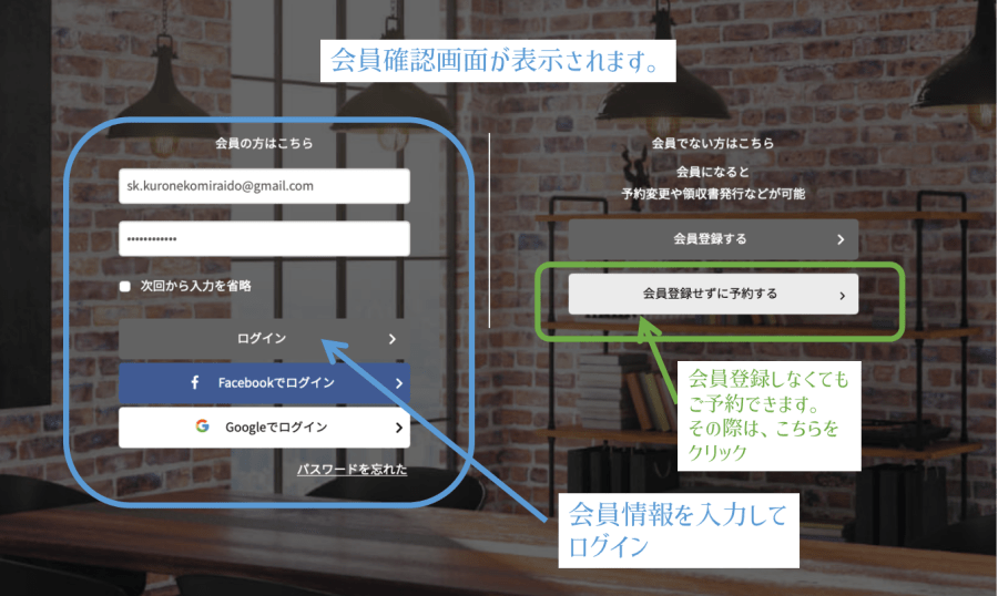 会員登録をしないでご予約される際は、こちらの項からご覧ください。