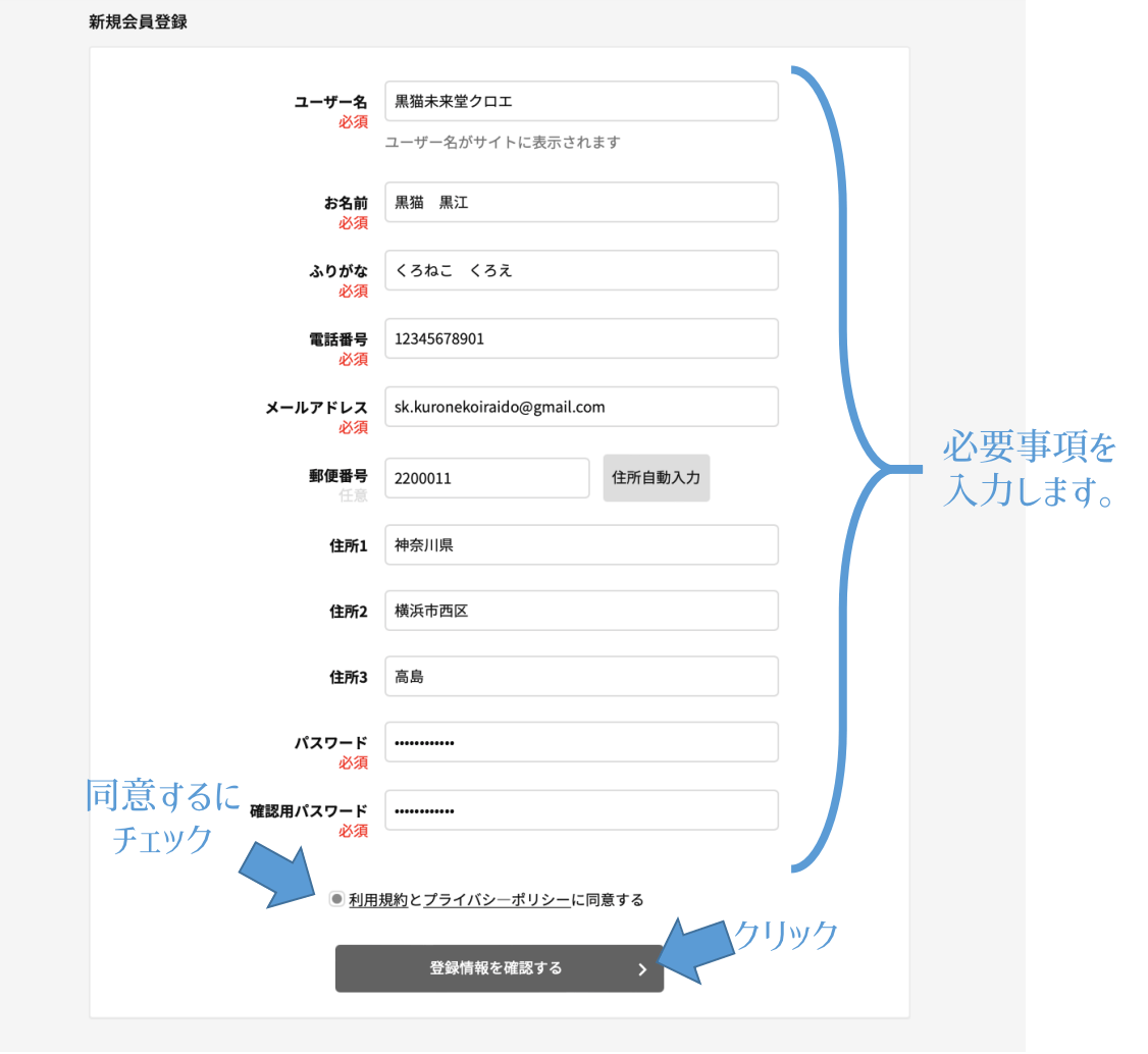 新規会員登録画面が表示されます。