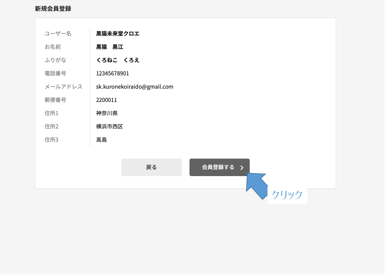 確認して、間違いがなければ「会員登録する」をクリック。