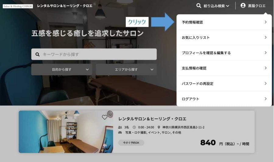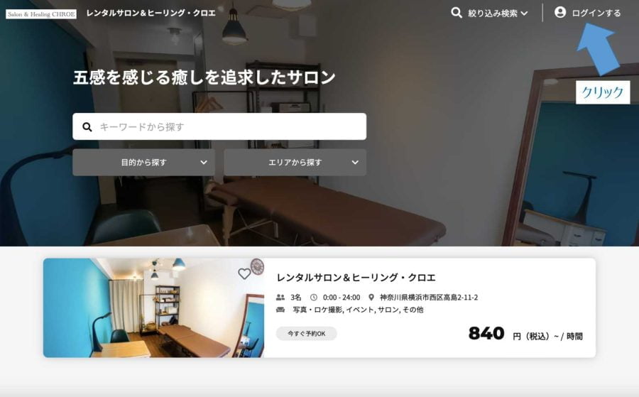 予約サイトのトップページより、ページ下部のサロンの名前をクリックしてください。